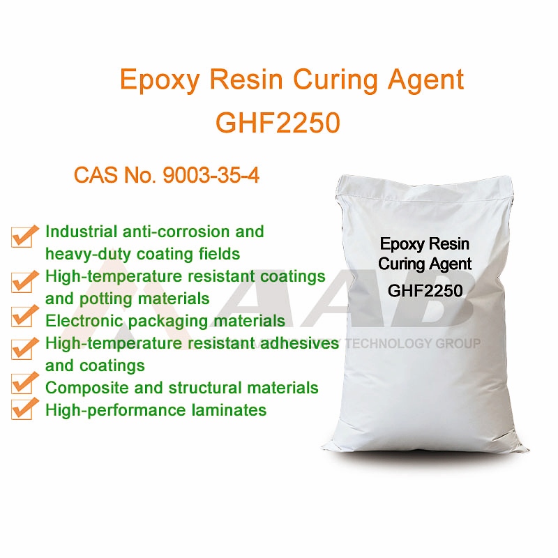 White or pale-yellow transparent granule/powderGHF2250 is an innovative epoxy curing agent newly developed by China AAB Industry Technology Group. Designed for epoxy resin systems, it initiates cross-linking reactions with epoxy groups to transform liquid or thermoplastic resins into solid materials with enhanced strength and performance. Derived from a unique phenolic resin structure, it is particularly suitable for demanding applications in electronics, automotive coatings, and industrial systems where both high performance and production efficiency are essential.